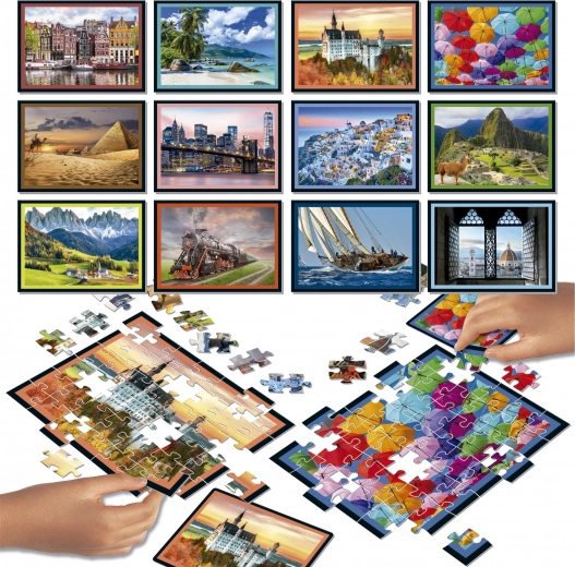De set bevat 12 puzzels (elk 42 stukjes) en 12 voorbeelden, zodat je eenvoudig toernooien kunt organiseren en tijden kunt vergelijken. Een geweldig cadeautip voor puzzelliefhebbers en gezellige familie-avonden.