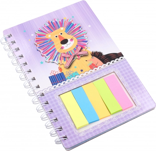 Een schattig notitieblok met vier dierenmotieven dat zowel kinderen als volwassenen zal bevallen. Bevat 60 vellen voor notities en stickers om belangrijke taken te markeren. Het praktische formaat 12,1 × 18,5 cm past in handtas en rugzak.