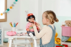 Biedt bescherming tegen letsel en geeft de BABY born pop een stijlvolle rit dankzij het beweegbare vizier en speelse decoraties.