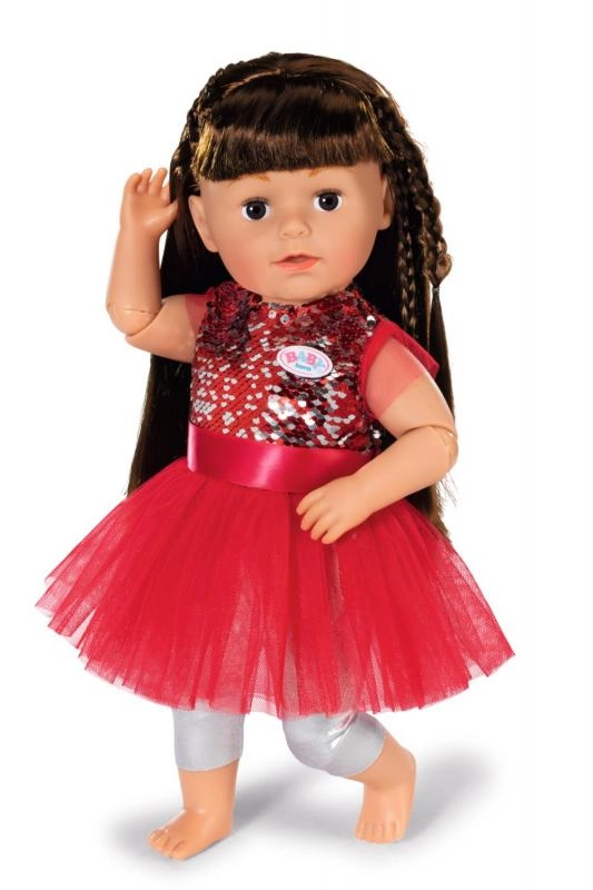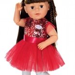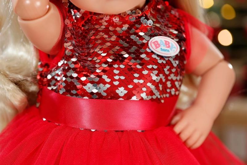 BABY born kleedt zich met Kerst graag feestelijk. En wat is er mooier dan een rode jurk met pailletten en een tule rok, zilveren leggings en een kerstmuts die de oren warm houdt?