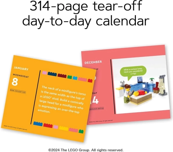 Geniet elke dag van het jaar van de leuke dagelijkse LEGO 2025 scheurkalender van Chronicle Books. Je vindt er Engelse woordgrapjes, grappen uit de LEGO-wereld, verhalen over minifiguren en gekke bouwuitdagingen. De kalender is plasticvrij, gemaakt van 100% recyclebare materialen en is perfect als cadeau voor LEGO-fans van alle leeftijden.