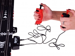 De baan wordt bediend met behulp van een afstandsbediening met gasknoppen, die op het bedieningsstation op de baan moeten worden aangesloten. Dit speelgoed vereist geen batterijen; de voertuigen worden gevoed door een stroombron.