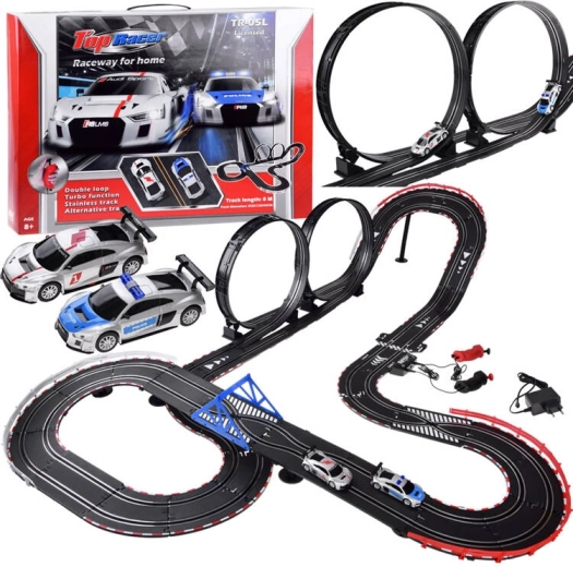 Extra lange racebaan is de droom van elke rally- en autoliefhebber. Het circuit met een lengte van 8 m met twee voertuigen, extreme hellingen en bochten zorgt tijdens het spelen voor veel spanning. Twee supersnelle auto’s met Audi-licentie zijn met zorg voor detail gemaakt. Het geheel ziet er zeer indrukwekkend uit.