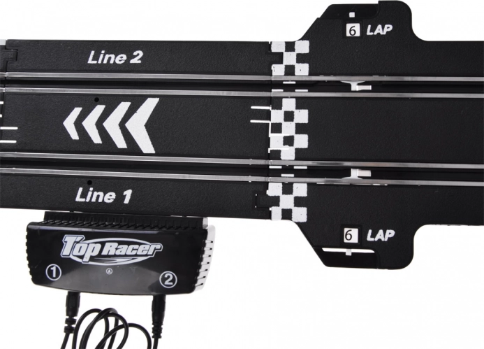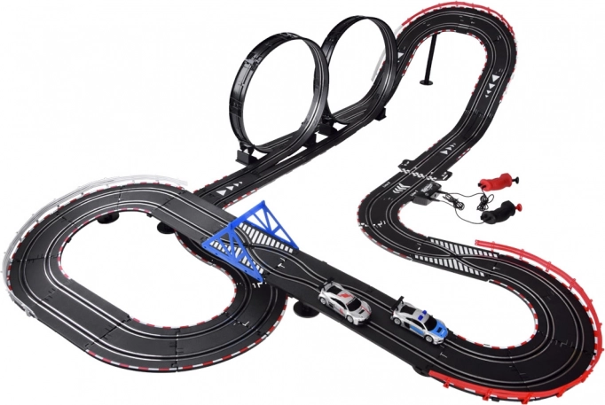 Slotcar-racebaan 1:64 met 2 auto’s en controllers, lengte 530 cm