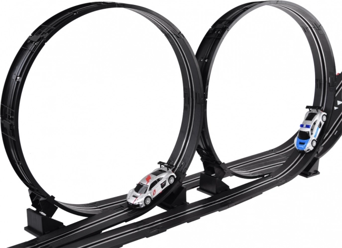 Lichtgevende racebaan voor kinderen 3+ met LED-autootjes, 360° loops, verhoogde secties, 166 onderdelen