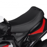 De gevormde zitting met eco-leren bekleding verhoogt het comfort en ondersteunt een juiste zithouding tijdens het rijden.