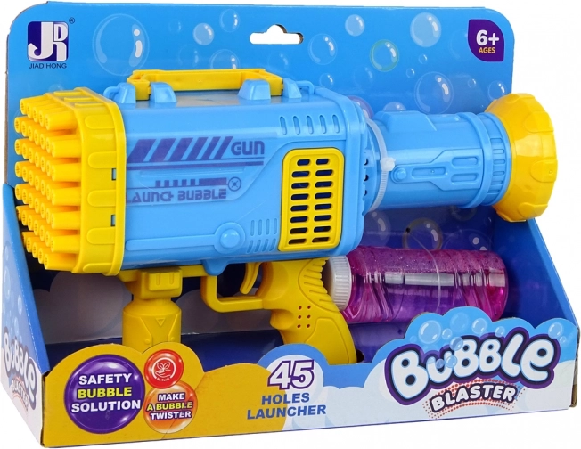 Dit bellenblaaspistool verandert elke tuin, speelplaats en elk feestje in een kleurrijke show. Giet de oplossing op het schaaltje, doop de kop en druk op de trekker – een stroom fonkelende bellen schiet meteen de lucht in. De robuuste constructie in futuristische bazookalook is licht en ligt goed in kinderhanden.