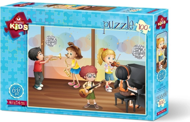 Een leuke puzzel met het thema van een kinderorkest die zowel jonge als oudere puzzelaars zal verrassen. Bevat 100 stukjes en heeft na het leggen een afmeting van ca. 48 × 34 cm. Ideaal voor het ontwikkelen van geduld, logisch denken en fijne motoriek en voor gezellige familiemomenten.