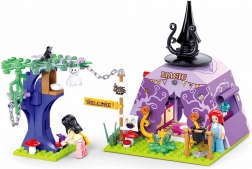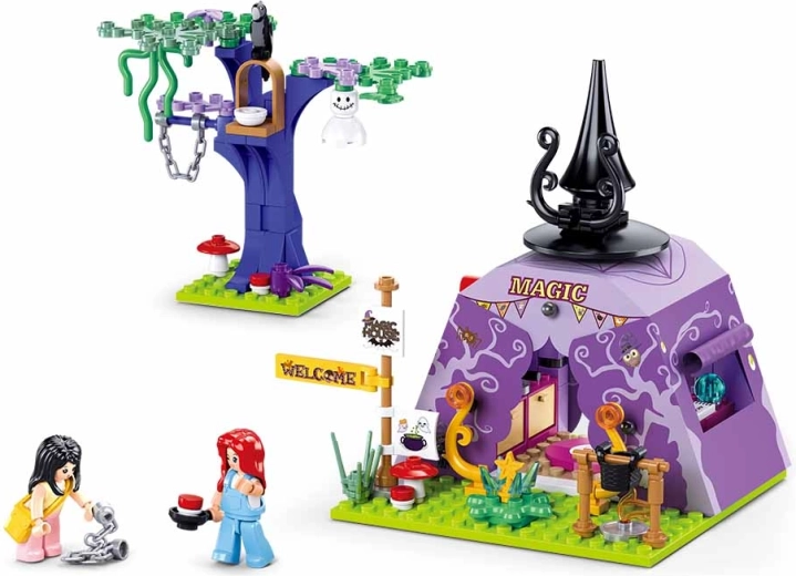 De bouwset bevat een magische tent in een fascinerende paarse kleur met de tekst 'MAGIC', ideaal voor spel en verbeelding.