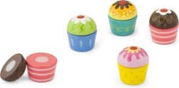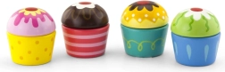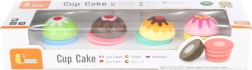 Geef de kinderfantasie de vrije loop en laat de kleine bakker eigen zoete combinaties samenstellen. Elke cupcake bestaat uit twee delen die met klittenband verbonden zijn – topping en bodem kunnen keer op keer eenvoudig worden verwisseld. Ideaal als aanvulling voor de kinderkeuken en voor winkeltje of café spelen.
