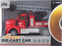 Metalen model van een brandweerauto. Verpakt in een doos. Afmetingen van de verpakking ca. 16,5×12,5×7 cm. Leeftijd 3+
