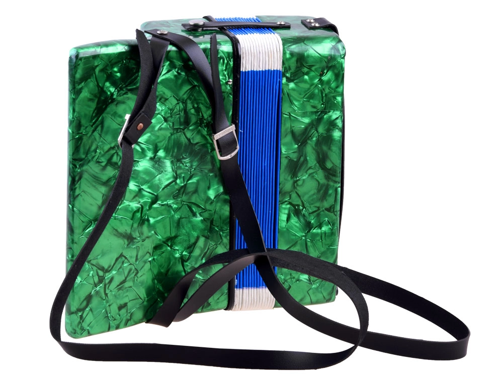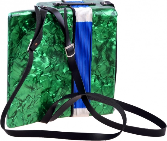 Dankzij de compacte afmetingen (ca. 23 × 23 × 10 cm) en het lichte, draagbare ontwerp ligt de accordeon prettig in de hand. De leren schouderriem en de handgreep zorgen voor een zekere grip, ook bij langer spelen. De balgclip beschermt het instrument tijdens vervoer en opslag.