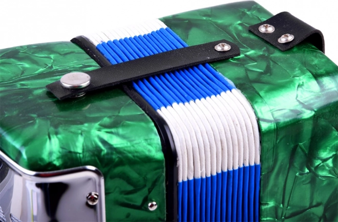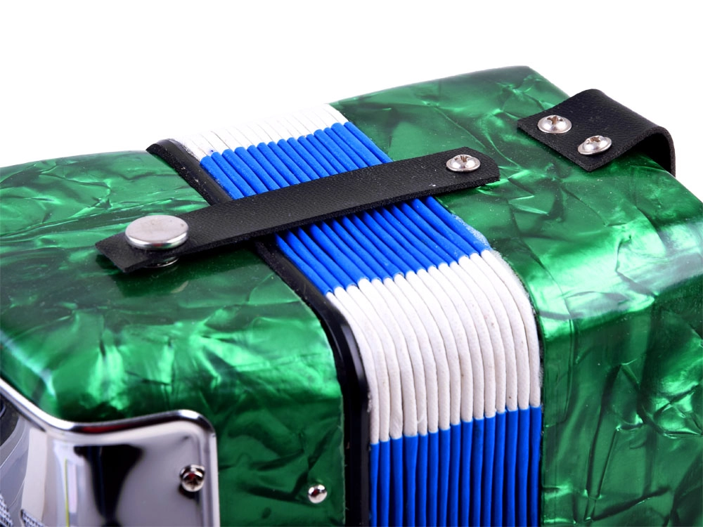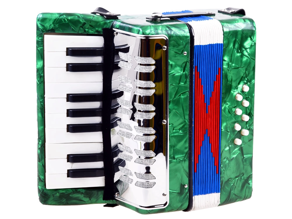 Deze kinderaccordeon Harmonia is met zorg en oog voor esthetiek vervaardigd om kinderen een authentieke muzikale ervaring te bieden. Het speelprincipe is hetzelfde als bij een echte accordeon – het geluid ontstaat door het uitrekken en indrukken van de balg terwijl tegelijk toetsen en knoppen worden ingedrukt. Heldere en aangename tonen moedigen kinderen aan om de wereld van muziek verder te ontdekken.