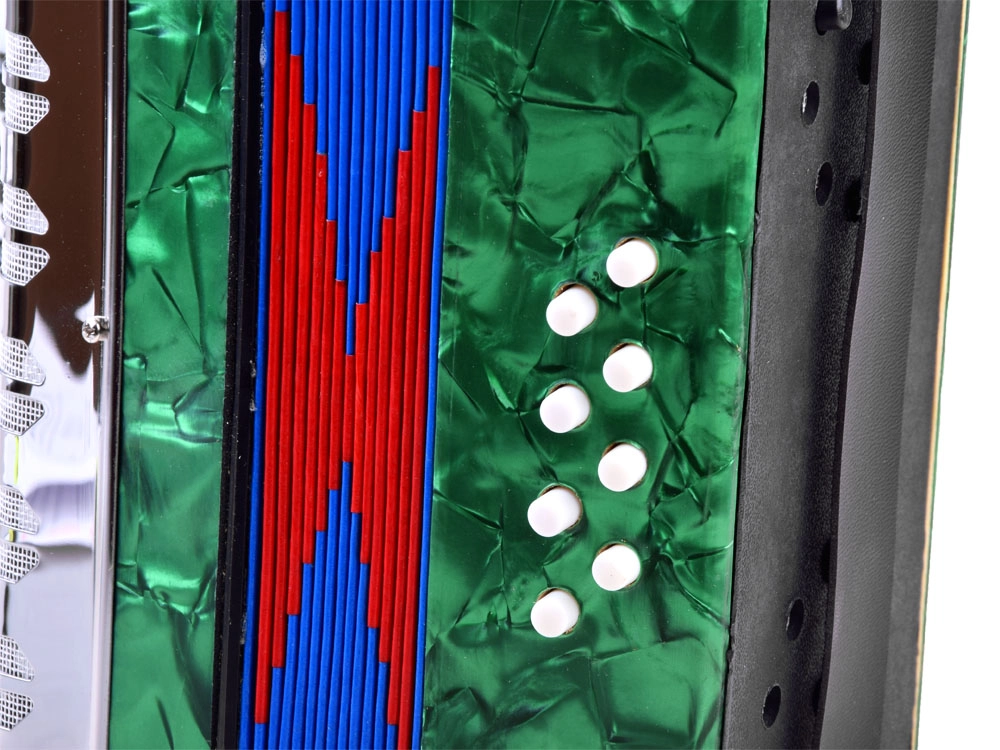 De blauw-rode balg voegt stijl toe en het instrument produceert heldere, aangename tonen die zowel kinderen als ouders zullen waarderen.