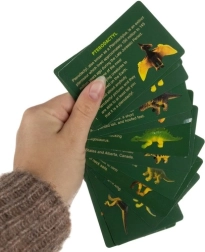De set bevat educatieve kaarten met illustraties en informatie over dinosaurussen voor extra leerplezier.