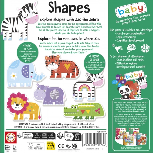 EDUCA baby inlegpuzzel ontdek vormen met zebra Zak (6 × 2 stukjes)