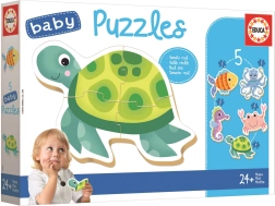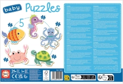 De baby puzzel EDUCA Waterdieren 5-in-1 is speciaal ontworpen voor de allerkleinsten. Stimuleert de psychomotorische ontwikkeling, oog-handcoördinatie en geduld en logisch denken. De gelegde afbeelding is ongeveer 15 × 15 cm, een ideale grootte voor kleine handjes en eerste successen.