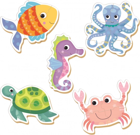 Ontdek de leuke en leerzame baby puzzel met zeedieren van het merk EDUCA. De set bevat 5 progressieve puzzels van 3–5 stukjes, met grote en stevige stukken die makkelijk vast te pakken zijn. Ideaal voor de eerste puzzelervaring – bevordert de fijne motoriek, concentratie en verbeelding van kinderen.