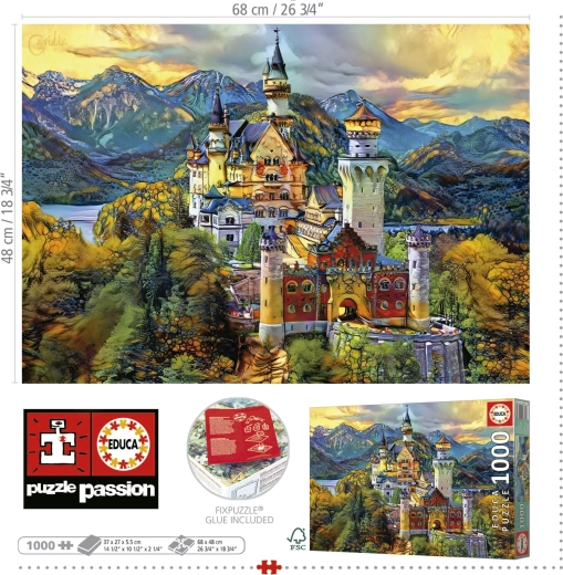 Geniet van ontspanning én uitdaging met deze gedetailleerde puzzel met het iconische kasteel Neuschwanstein. Het merk Educa staat bekend om hoge afdrukkwaliteit, precies gesneden stukjes en een prettig materiaal, waardoor de stukjes perfect in elkaar passen.