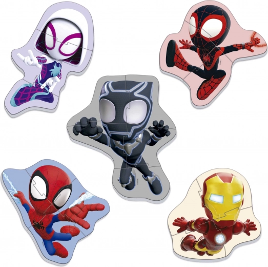 Ontdek het leuke baby puzzel met helden uit de wereld van SPIDEY en zijn geweldige vrienden. De set 5-in-1 bevat progressieve puzzels met 3–5 stukjes, ideaal voor kinderen vanaf 24 maanden. Grote, stevige stukken liggen goed in de hand en stimuleren de fijne motoriek, aandacht en logisch denken.