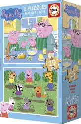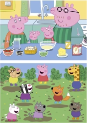 Deze set bevat 2 houten puzzels met hetzelfde aantal stukjes en identieke afmetingen, ideaal om de fijne motoriek, concentratie en logisch denken te trainen. De geliefde figuren uit het verhaal van Peppa Pig spreken kinderen meteen aan en motiveren hen om te puzzelen.