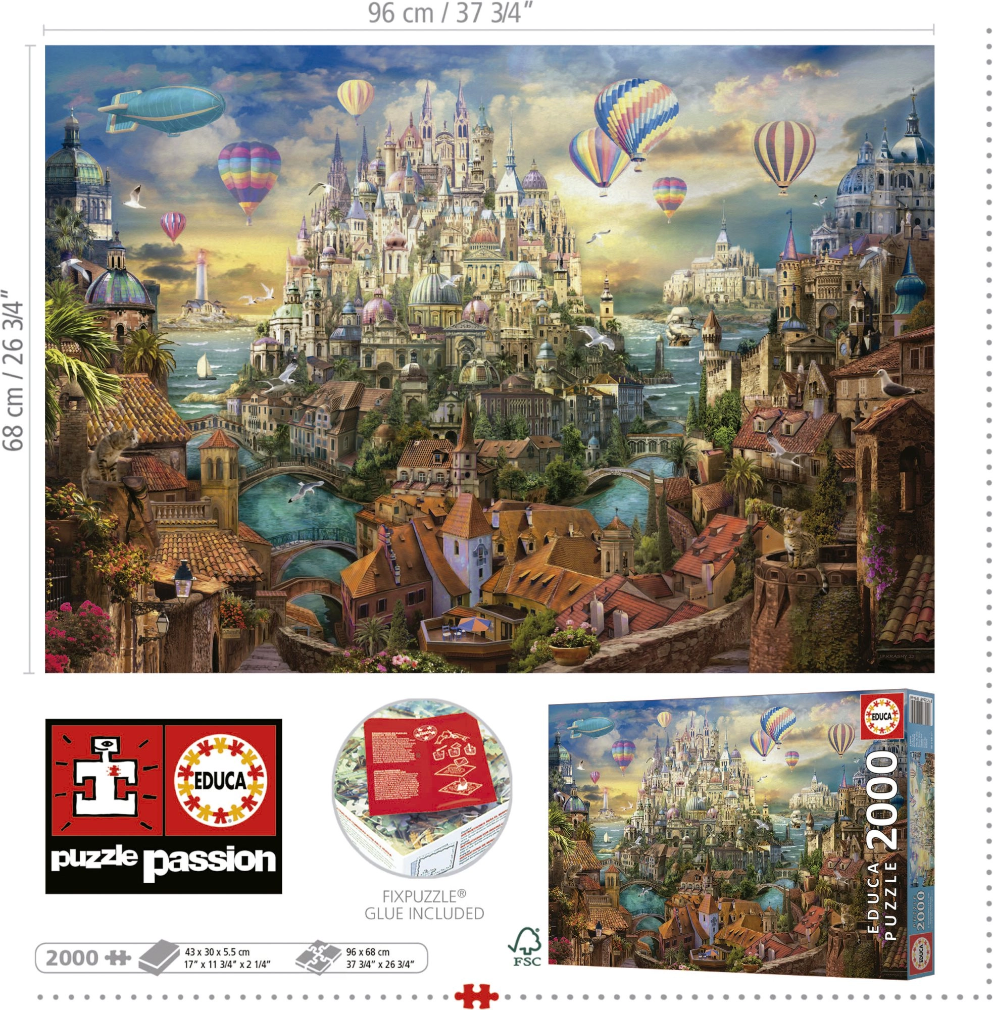 Ontdek de uitdaging voor puzzelliefhebbers: de EDUCA-puzzel Stad van Dromen met 2000 stukjes biedt een gedetailleerd ontwerp en hoogwaardige afwerking. In de verpakking zit FIX PUZZLE-lijm gratis voor het eenvoudig fixeren van het voltooide beeld met een afmeting van 96 × 68 cm.