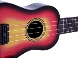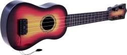 Deze kindergitaar is een uitstekende keuze voor jonge muziekliefhebbers die de wereld van tonen en akkoorden willen ontdekken. Dankzij de compacte afmetingen ligt hij goed in de hand; de kunststof body met houtlook oogt elegant en is duurzaam. Vier metalen snaren en eenvoudige afstelling op de hals helpen een zuiverder geluid te bereiken en motiveren om verder te spelen.