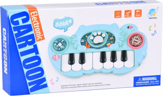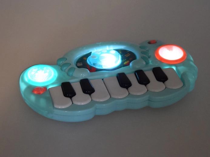Een schattig kinderpiano in turquoise uitvoering brengt kinderen hun eerste stapjes in de wereld van muziek. Het biedt meerdere afspeelmodi, verlichte knoppen en basistonen van de toonladder, die fijne motoriek en ritmegevoel stimuleren. Dankzij de compacte afmetingen is het ideaal voor op reis en voor thuis spelen. Verlichte effecten, drumgeluiden, korte melodieën en basistonen boeien kleine muzikanten urenlang.