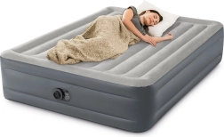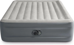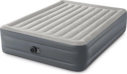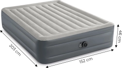 Het premium opblaasbed van INTEX is ideaal voor gasten, thuisgebruik en kamperen. De verhoogde constructie met een hoogte van 46 cm maakt opstaan makkelijker, terwijl duurzaam PVC met een waterbestendig velours oppervlak zorgt voor comfort en een lange levensduur. De ingebouwde pomp op 220–240 V maakt het bed in ongeveer 250 seconden gebruiksklaar.