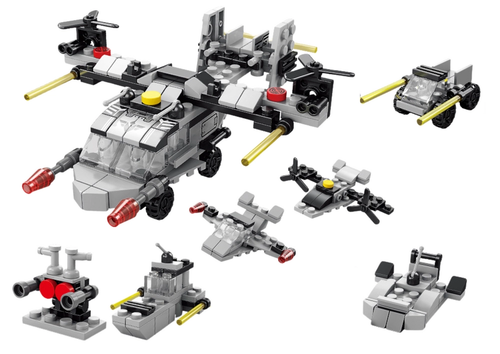 De set bevat 117 onderdelen waarmee zes verschillende voertuigmodellen kunnen worden samengesteld. Elk onderdeel is nauwkeurig geproduceerd, wat zorgt voor eenvoudig bouwen en een duurzame constructie.