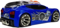 De Sportieve DJ-auto biedt een combinatie van muziek, licht en actie. Twee oranje knoppen op het dak bedienen het afspelen van melodieën en het geluid van snelle acceleratie, terwijl de luidsprekers op het dak om en om in het ritme bewegen. Dankzij de opvallende verlichting en sportieve stickers oogt de auto energiek en trekt hij de aandacht van elke kleine bestuurder.