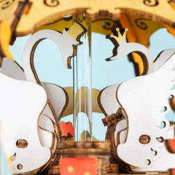Ontdek de magie van precisie en muziek in één. De 3D puzzel muziekdoos van RoboTime in het thema van een pompoenkoets is een kleurrijk, gedetailleerd model met sierlijke zwanen dat bij het opwinden de melodie Born Free afspeelt. Dankzij slimme bewegende elementen prikkelt niet alleen de muziek, maar ook de verbeelding.