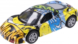 Stijlvol metalen autootje met een origineel graffiti-design dat zowel kleine als grote verzamelaars zal bekoren. De compacte lengte van 9 cm, terugtrekmechanisme en 3 verschillende varianten maken het een geweldige keuze voor zowel speelplezier als de vitrine.