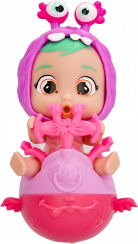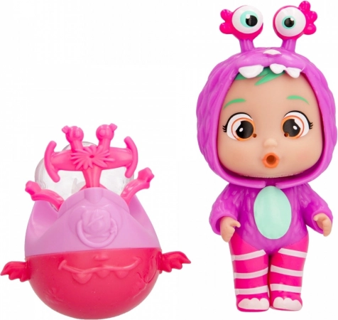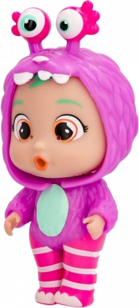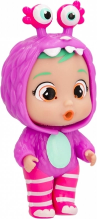 Na het vullen met water en het indrukken van het buikje begint de pop te huilen met gekleurde geltranen, wat een realistische speelervaring biedt.