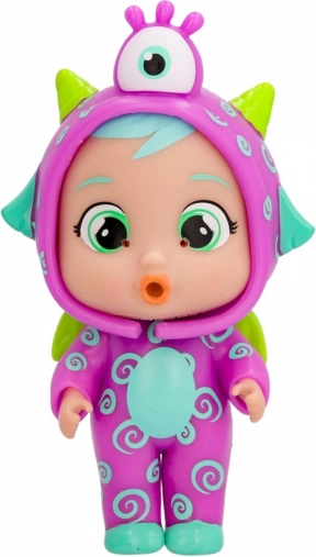 Fuzz uit de serie CRY BABIES MAGIC TEARS Stars Jumpy Monsters brengt kinderen speelse, fantasierijke verhalen. De pop heeft een afneembaar siliconen kostuum met een schattig monsterthema en kan gekleurde tranen – slijm huilen. Vul haar eenvoudig met water met het bijgeleverde flesje en druk zachtjes op het buikje.
