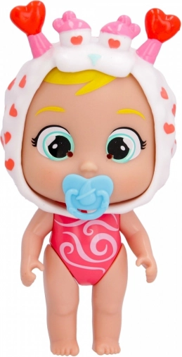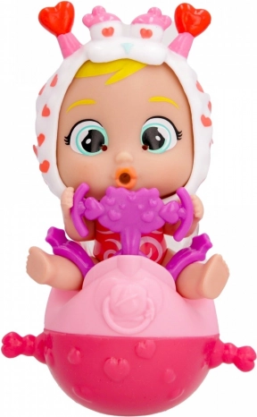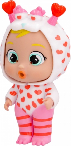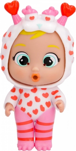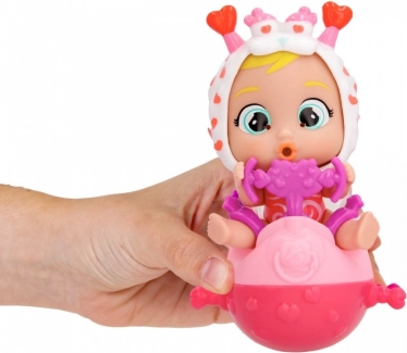 De interactieve pop Momo huilt kleurrijke tranen wanneer je op haar buikje drukt, wat een nieuwe dimensie aan het spel toevoegt.