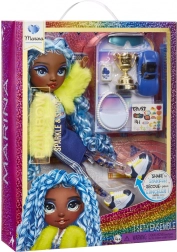 De Sparkle & Shine-lijn brengt een ander soort regenboog, die alleen ’s nachts verschijnt – zeldzaam, uniek en oogverblindend. Marina uit de RAINBOW HIGH-serie valt op door haar betoverende look, uitgesproken stijl en een bijzonder detail: met glitters gevulde benen die bij elke beweging een hypnotiserend effect creëren.