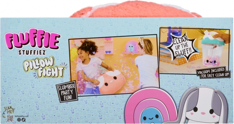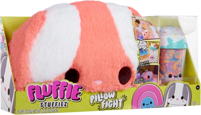 Dit schattige en superzachte kussen in de vorm van een konijntje uit de Fluffie Stuffiez Pillow Fight-serie biedt kinderen comfort én eindeloos speelplezier. Je kunt het knijpen, de haartjes uittrekken, opvullen en natuurlijk liefhebben – ideaal om mee te spelen, te decoreren en te knuffelen.