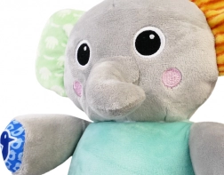 Korte geluiden uit de handen van de olifant ondersteunen de zintuiglijke ontwikkeling van het kind.
