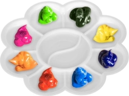 Het bloemvormige kunststof palet vergemakkelijkt het scheiden en mengen van kleuren, houdt orde tijdens het werken en bespaart tijd.