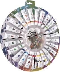 Complete set acrylverf met palet voor zowel beginners als gevorderden. Bevat 24 tinten van 12 ml met levendige pigmenten, hoge dekkracht en sneldrogende formule. De verven zijn gemakkelijk mengbaar, met water verdunbaar en vormen na droging een duurzame, waterbestendige film. Geschikt voor doek, papier, hout, keramiek en textiel.