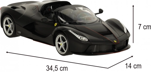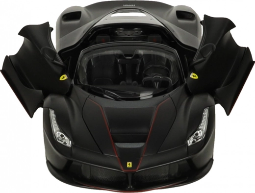 Dit natuurgetrouwe model van de FERRARI LaFerrari Aperta verrast met precieze carrosseriedetails, sportvelgen en authentieke proporties. De zwarte afwerking met merkemblemen benadrukt de exclusieve look van de supersportwagen.