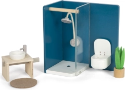 Geniet van de perfecte aanvulling op het poppenhuis met deze gedetailleerde miniatuur badkamer. Bevat:
