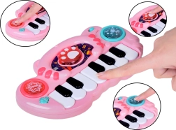 De schattige katvorm en verlichte elementen nodigen uit tot spelen. Elke toetsaanslag gaat gepaard met een lichtje, wat het visuele waarnemen stimuleert en de aandacht van het kind vasthoudt.