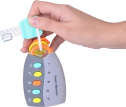 Kinderen houden ervan om volwassenen na te doen – en met deze interactieve sleutels beleven ze veel veilige en stimulerende pret. De afstandsbediening met gekleurde knoppen speelt vrolijke melodieën en authentieke autogeluiden af, vergezeld door knipperende lichtjes. Het speeltje is licht, ligt prettig in de hand en is gemakkelijk schoon te maken.