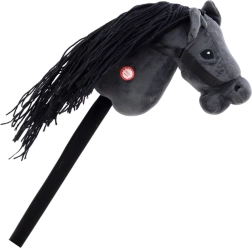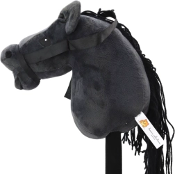 De pluche hobby horse in elegante zwarte kleur stimuleert actieve beweging, fantasie en rollenspel. Door op de gemarkeerde plek op de kop te drukken, hoor je realistische draf-/galopgeluiden, waardoor kinderen zich voelen alsof ze op een echt paard zitten.
