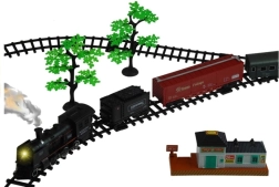 Deze gedetailleerd uitgewerkte treinbaan zal zowel jonge als volwassen spoorwegliefhebbers bekoren. De locomotief met realistische rook uit de schoorsteen en verlichting rijdt over stabiele rails in ellipsvorm, aangevuld met een station en bomen voor een nog authentieker sfeertje. De eenvoudige klikverbindingen van de rails zijn ook voor kinderen geschikt en de hoogwaardige kunststof garandeert een lange levensduur.