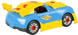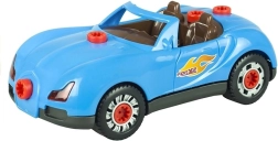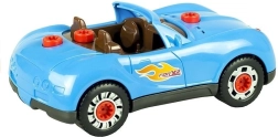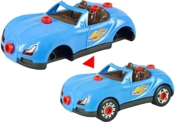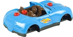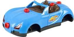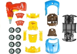 De set bevat 30 componenten, inclusief carrosserie, wielen, schroeven en accessoires. De boormachine werkt op 2× AA-batterijen (niet inbegrepen), de licht- en geluidseffecten van de auto worden gevoed door 2× AG13-batterijen (wel inbegrepen). Dankzij de eenvoudige montage trainen kinderen fijne motoriek, logisch denken en creativiteit.