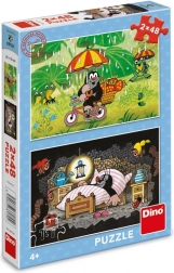 Ontdek de betoverende wereld van het geliefde figuurtje het Molletje met deze dubbele set kinderpuzzels van DINO. Elke puzzel heeft 48 stukjes en toont prachtige scènes – een vrolijk fietsritje in de regen en een rustig moment in een knus kamertje. Tijdens het leggen versterken kinderen hun geduld, leren zij zich te concentreren en ontwikkelen zij hun verbeeldingskracht.