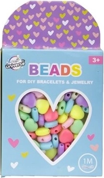 Set kleurrijke kralen in een mooie kartonnen doos; de verpakking bevat ook een koord van 1 meter om de kralen te rijgen. De kralen zijn gemakkelijk te rijgen en je kunt armbanden en kettingen maken – voor jezelf of voor vriendinnen en vrienden. Te combineren met andere soorten kralen uit de collectie (12 soorten).